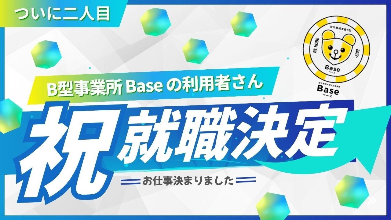 障がいがある人もない人も、誰もが一緒に楽しめるビーチづくりを目指すNPO法人須磨ユニバーサルビーチプロジェクト(以下、須磨UBP)が運営する就労継続支援B型事業所「Base」から、2025年7月より新たに1名の利用者さんが就職されましたのでご報告いたします。2024年に一人就職されて以降二人目の就職者となります。
